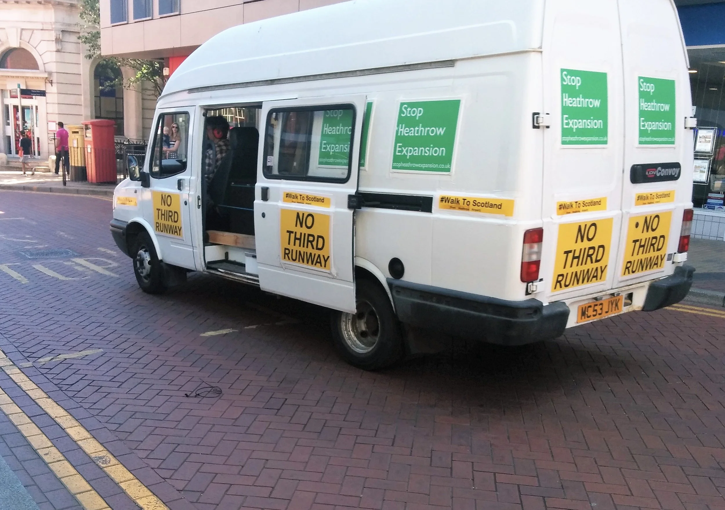 Some realised what was happening when they spotted the van and noticed yellow “No Third Runway” flags fluttering above the roofs of many of the cars travelling on the local roads.